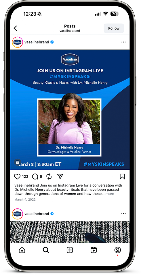 Vaseline launched the #MySkinSpeaks campaign to share information on skin health and equity through Instagram Lives, social posts, and limited-edition packaging. The brand needed strong visuals to bring the campaign together.